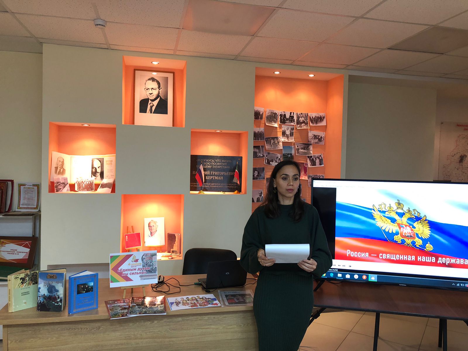 4 ноября наша страна отмечает День Народного Единства — праздник, символизирующий единство, многообразие и свободу. Это важное событие, которое помогает детям узнать о богатой истории, культуре и традициях страны. В рамках реализации национального проекта «Молодежь и дети», который направлен на поддержку и развитие потенциала молодого поколения страны для студентов 1 курса  Заинского Политехнического колледжа прошёл патриотический час истории «Народов много — страна одна». Библиотекари ознакомили с историей дня народного единства, рассказали, что в этот день народное ополчение, которое возглавили князь Дмитрий Пожарский и ремесленник Кузьма Минин, сплотившись, освободили родную землю от иноземных захватчиков. Особое внимание уделили народным обычаям, пословицам и поговоркам, которые передают мудрость поколений. Встреча получилась живой и познавательной. Библиотекари постарались, чтобы ребята не просто слушали, а активно участвовали в обсуждении. Задавались вопросы, высказывались мнения, и чувствовалось, что тема действительно затронула сердца первокурсников. В завершение мероприятия все сошлись во мнении, что такие патриотические часы очень важны. Они помогают молодым людям почувствовать себя частью большой и дружной страны, понять, что от каждого из них зависит её процветание. И, конечно, такие встречи – отличный способ узнать больше об истории своей Родины и о тех ценностях, которые объединяют всех россиян. Патриотический час вызвал большой интерес у присутствующих. Студенты с удовольствием участвовали в обсуждении. Всегда интересно поговорить о том, что для тебя важно, о своей стране, о ее истории и будущем. Ребята активно высказывали свое мнение, делились мыслями о том, что значит быть патриотом сегодня. Причем, что порадовало, говорили не только о героизме и подвигах прошлого, но и о вполне конкретных делах, которые каждый может делать здесь и сейчас. Обсуждение получилось очень живым и насыщенным. Думаю, каждый для себя что-то новое почерпнул и задумался о своей роли в жизни страны. И это, наверное, самое главное. Патриотизм – это не просто слова, это действия, которые каждый день меняют мир вокруг нас к лучшему.