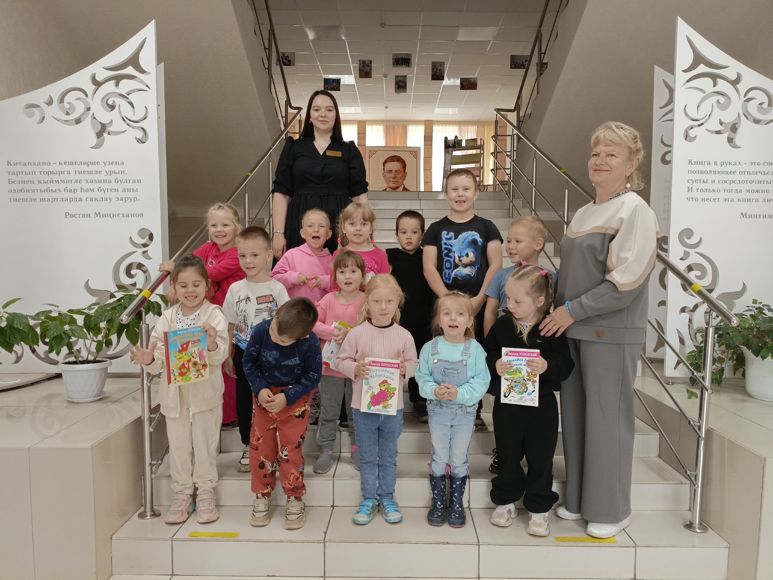 В детском читальном зале центральной библиотеки в этот день было особенно оживленно.☺ Все потому, что проходил час литературного героя, посвященный дню рождения Чебурашки!🎉 Представляете, сколько радости было у ребят из детского сада «Колокольчик», которые пришли поздравить любимого персонажа?😃