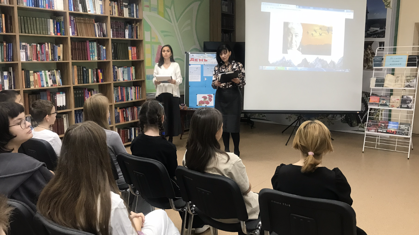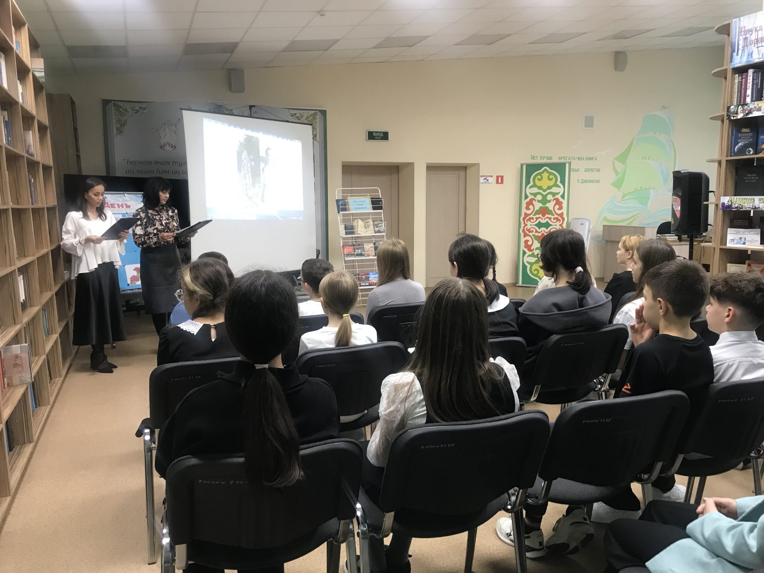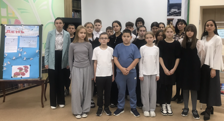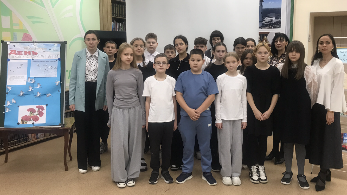 В этот день библиотекари Центральной библиотеки им. С.Рафикова для учащихся 6 класса ЗСОШ № 4 провели литературно-патриотический час «Зов белых журавлей».