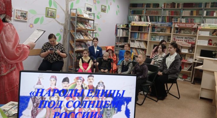 В детской библиотеке прошёл тематический час «Народы едины под солнцем России», посвящённый Дню народного единства. Гостями мероприятия стали воспитанники детского сада «Колокольчик» и активные читатели библиотеки.