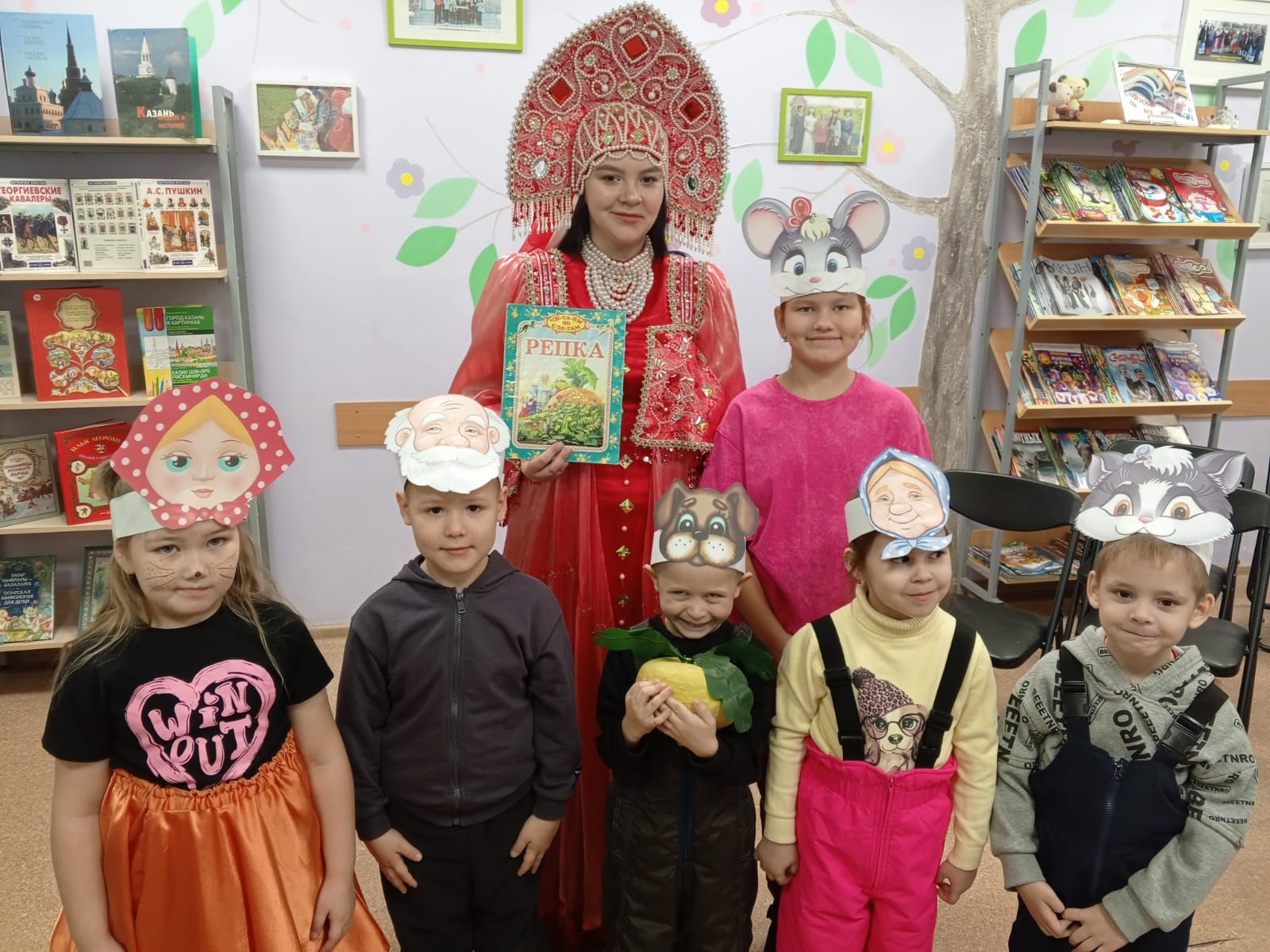 Завершился тематический час театрализованным представлением сказки «Репка». Юные зрители с удовольствием следили за развитием событий и стали участниками действа, помогая героям вытащить репку. В финале все участники мероприятия получили заряд бодрости и хорошего настроения, а также расширили свои знания об истории и культуре России.