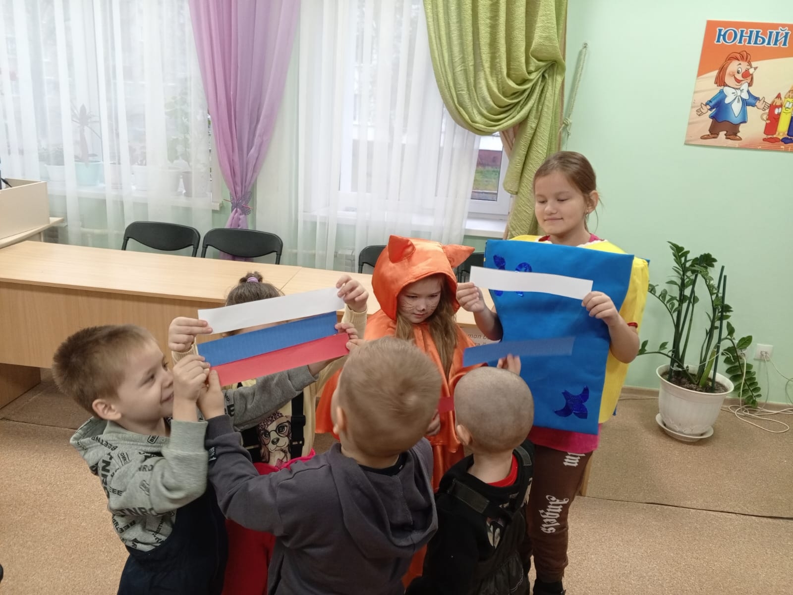 Далее ребят ждали увлекательные активности. Библиотекарь и со-ведущие вместе с детьми собирали флаг России, что позволило в игровой форме закрепить знание государственной символики. Продолжила тематический час русская народная игра «Колечко, колечко, выйди на крылечко!», вызвавшая бурю положительных эмоций и создавшая атмосферу дружбы и веселья.